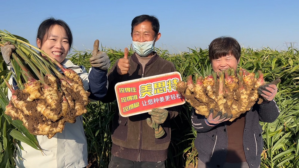 大姜种植方面,在山东省潍坊市昌邑市,使用美思特控释肥454(14-5-24+1MgO)的大姜明显高产,水洗姜亩产普遍能达到1.2-1.3万斤。且今年气候异常,后期雨水较多,但美思特的大姜产量丝毫不受影响。更值得注意的是,美思特大姜底盘平整、中间无空隙,呈现理想的“元宝”型,且裂口现象大幅减少。